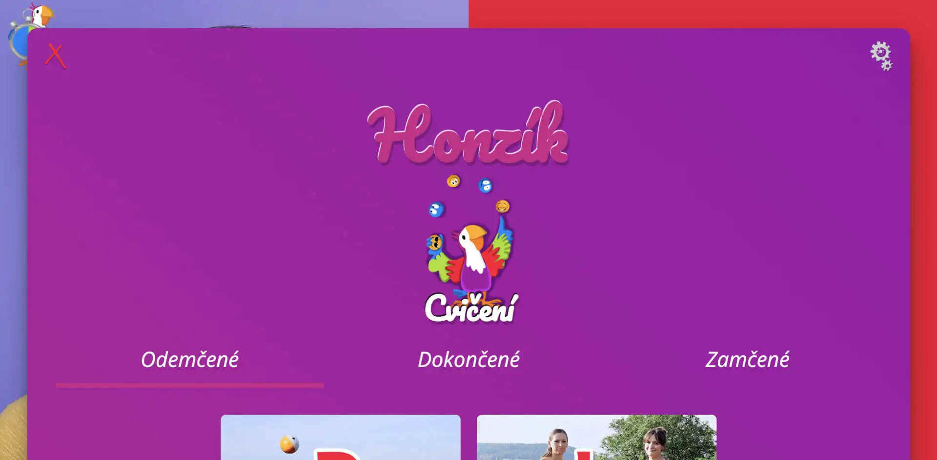 Obrazovku výukového videa zobrazíte tak, že kliknete na ikonu odemčeného nebo dokončeného souboru lekcí cvičení hlásek v sekci Cvičení, která se nachází v Obsahu herního profilu.