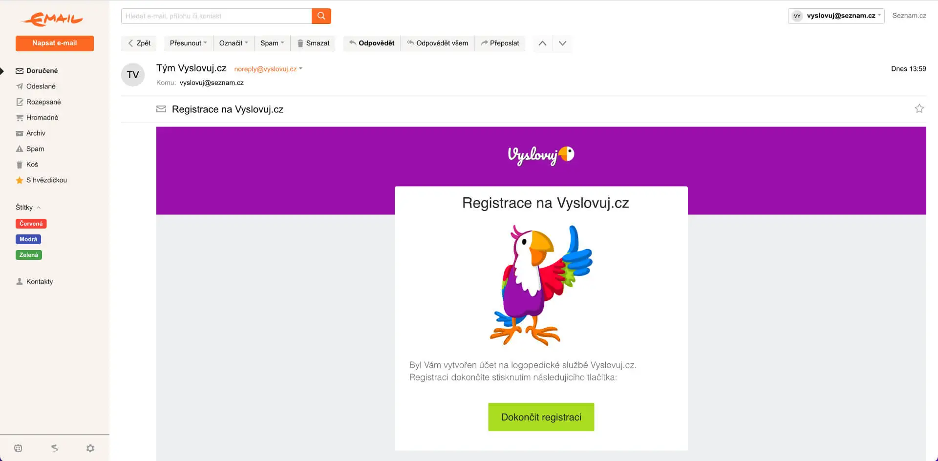 Otevřete e-mail s předmětem "Registrace ve Vyslovuj®".