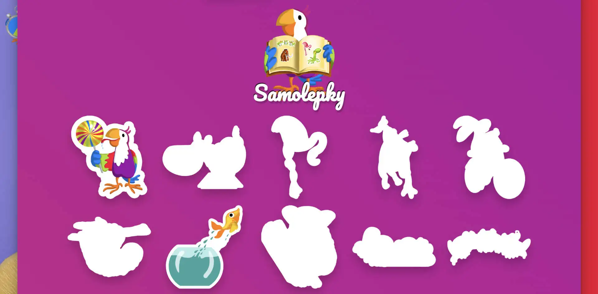 Na všechny herní prvky, od nadpisů, přes odměny až po samolepky, lze kliknout.