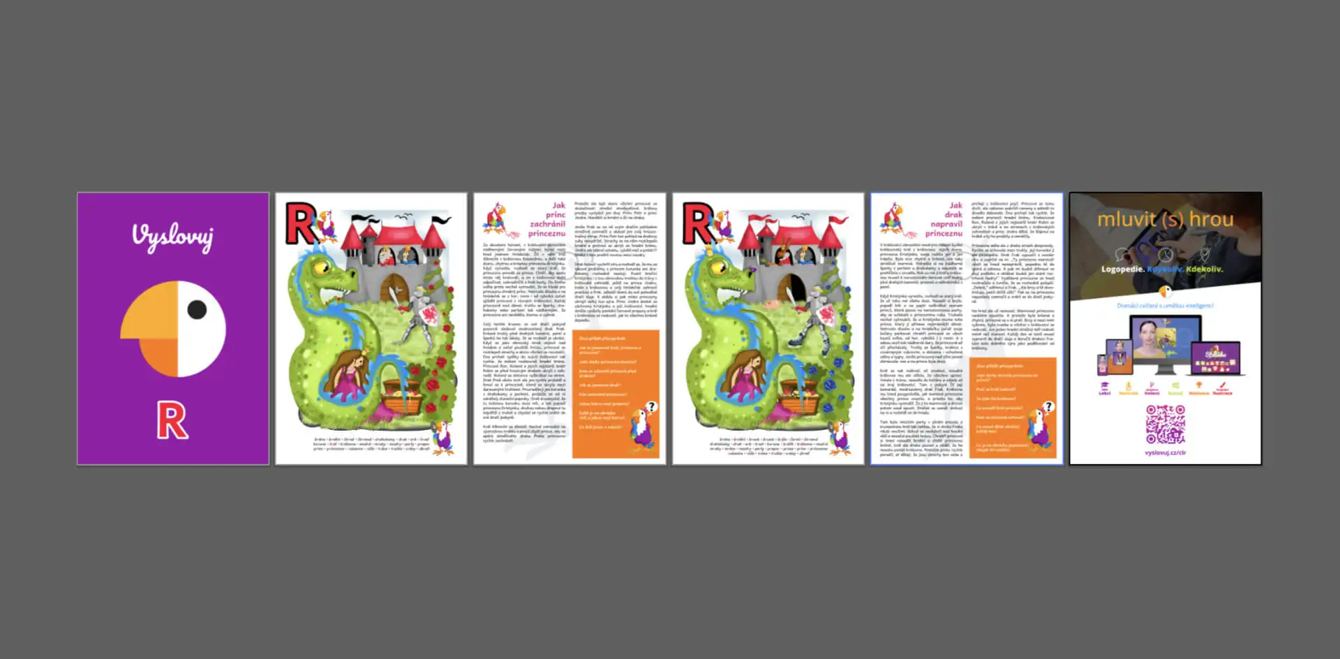 Pro každou hlásku je připraven cvičební list ve formě dvou ilustrovaných pohádek a úkolů.