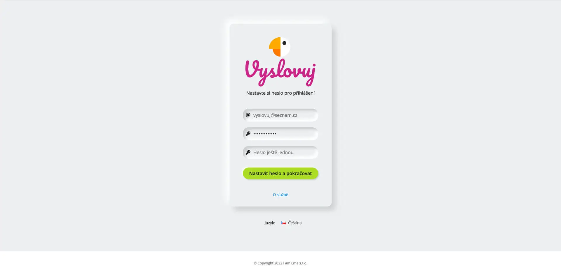 Nyní je potřeba vyplnit heslo, které budete používat pro přístup do služby Vyslovuj®.